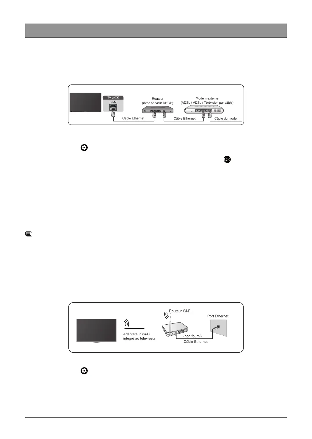 Allez dans la section ETHERNET et réglez le réseau TV en appuyant sur la touche pour accéder au sous-