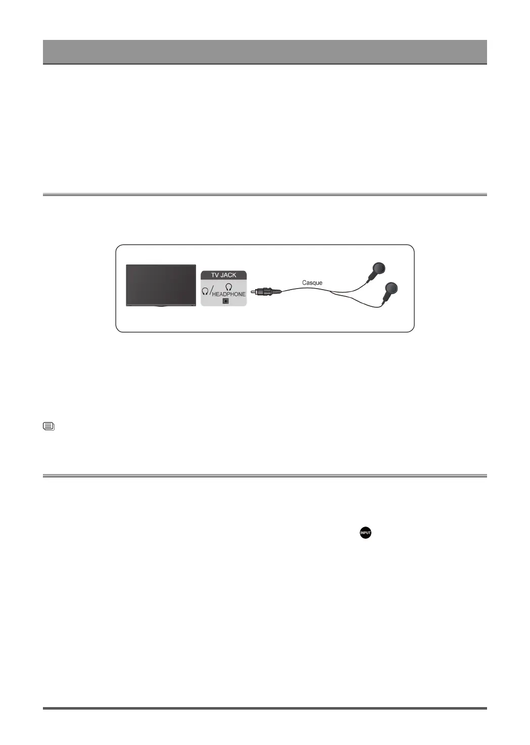> Mode casque, le casque et le téléviseur auront une sortie sonore simultanée.