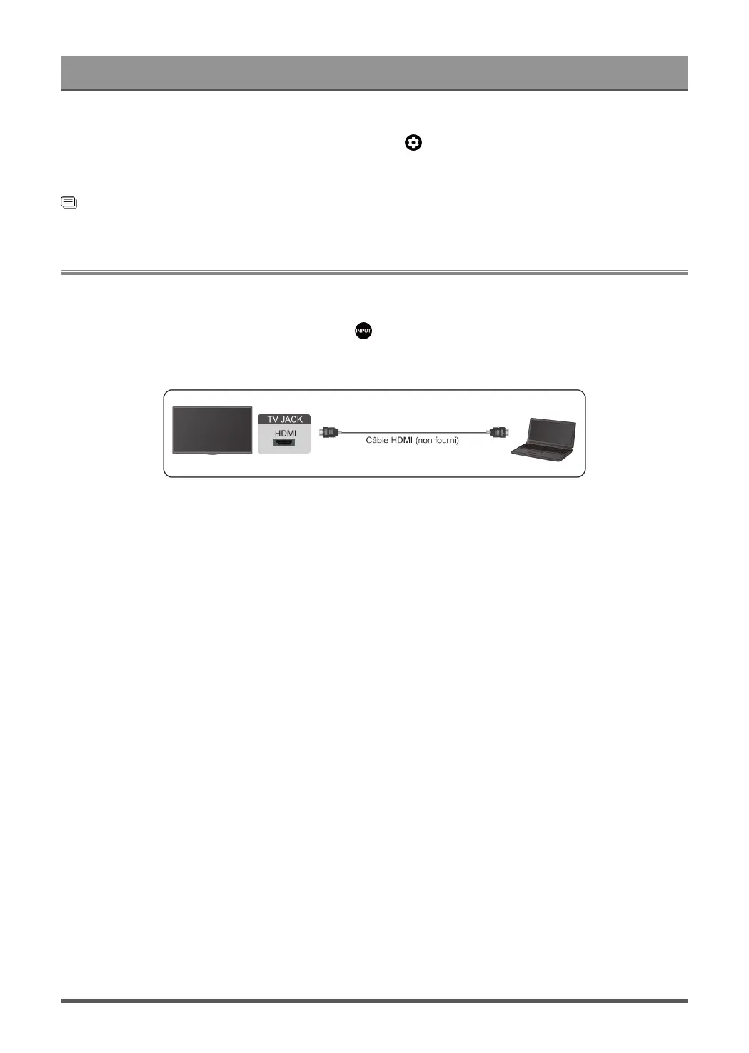 Vous pouvez connecter un ordinateur au téléviseur à l'aide d'un câble HDMI pour utiliser votre téléviseur