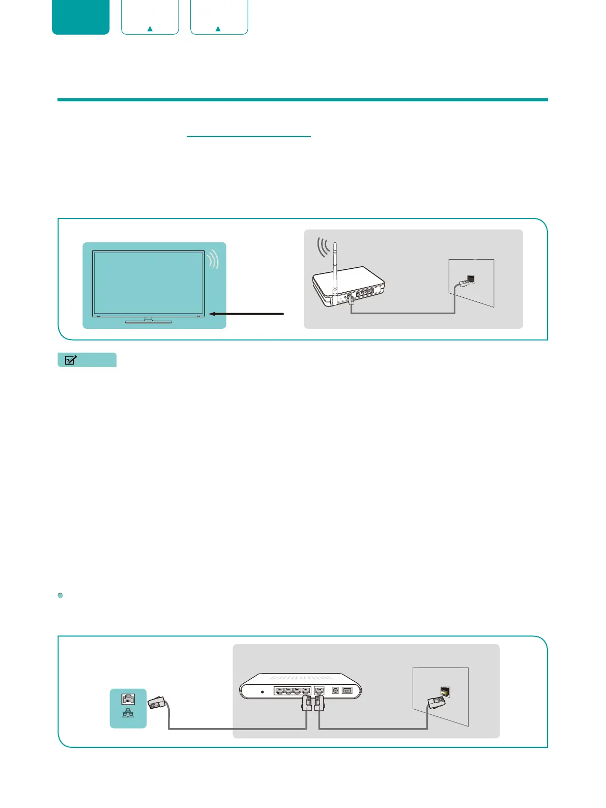 You have the option to connect your TV to a wireless or wired network to access the Internet. For more information about