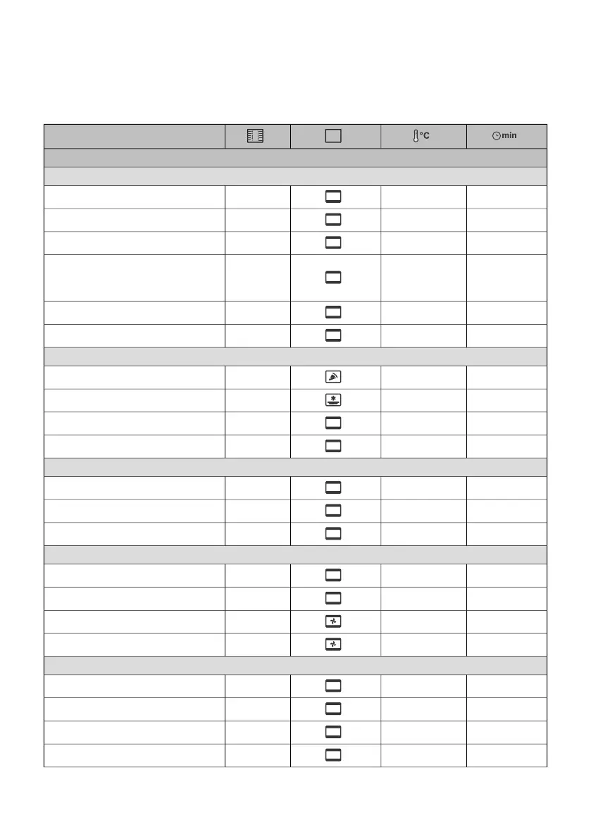NOTE: Dishes requiring a fully pre-heated oven are indicated with a single asterisk * in the table.