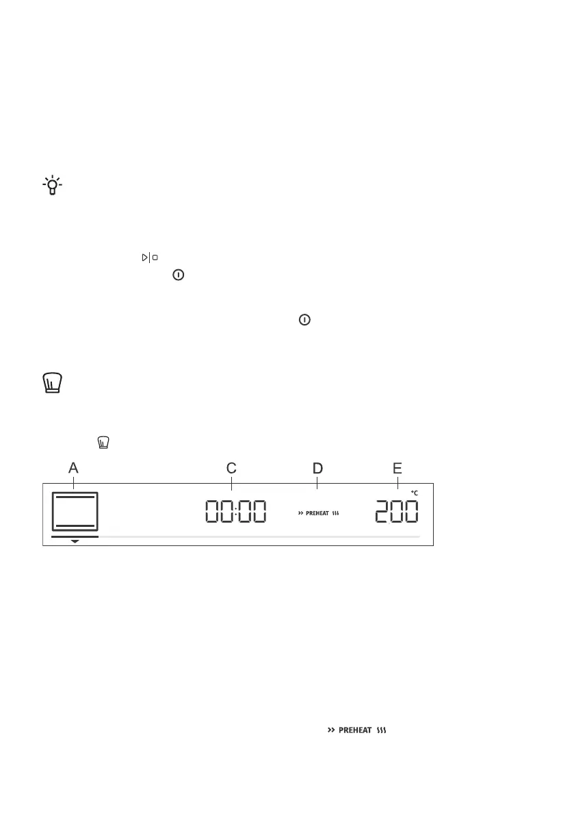 - brief touch: switch the oven on or off, stop the baking process or function.