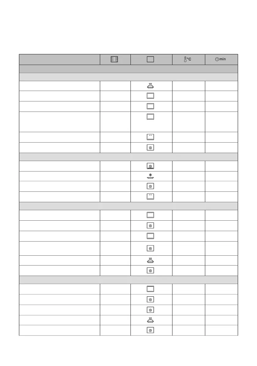 NOTE: Dishes requiring a fully pre-heated oven are indicated with a single asterisk * in the table.