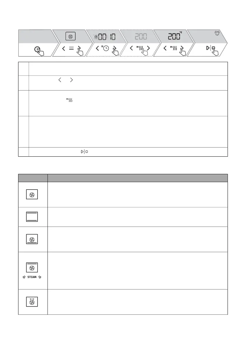 With the key or set the baking system (see table Selection of baking systems) and tem-