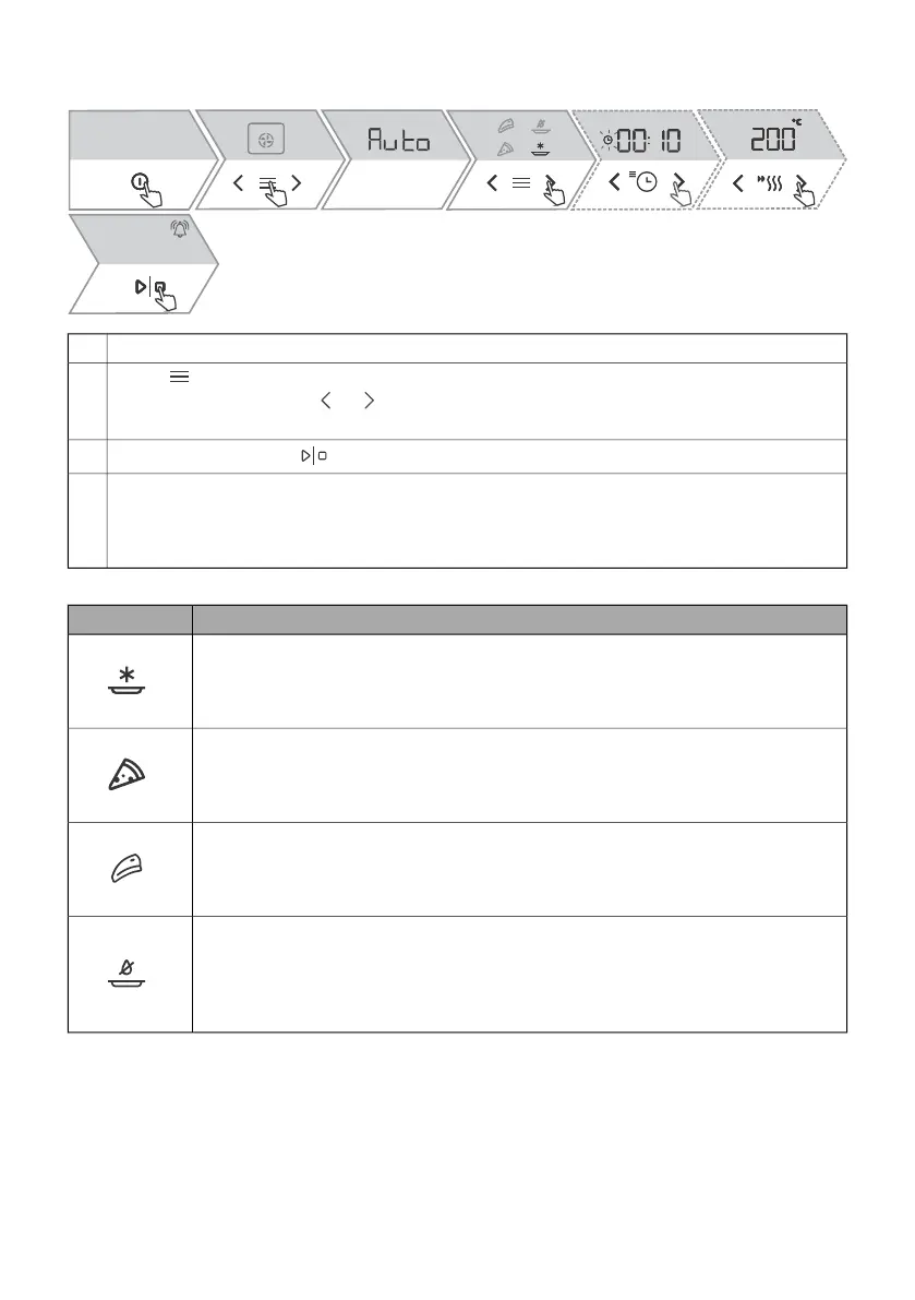 Some dishes also include the quick preheating function. The sign will be fully illuminated. When