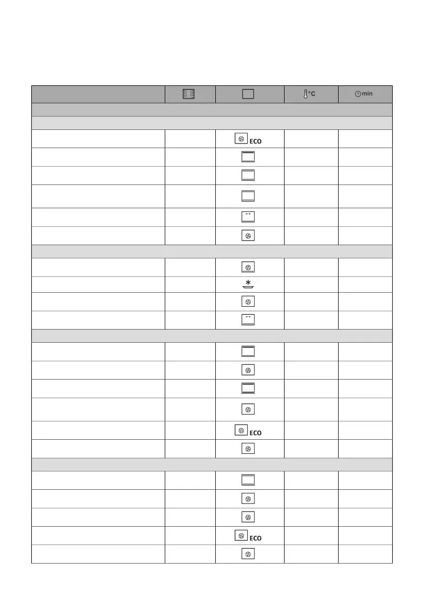 NOTE: Dishes requiring a fully pre-heated oven are indicated with a single asterisk in the table. *