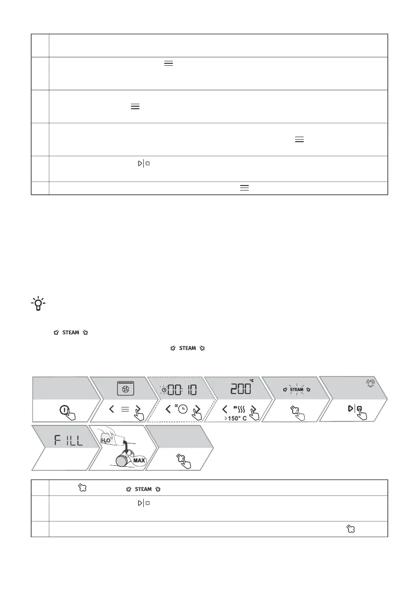 By touching again on , the display will show STEP2 (the second step of preparing a dish;