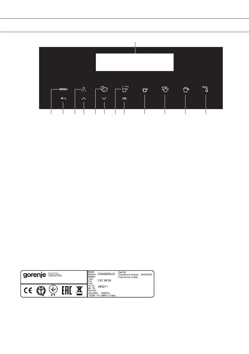 12. Сенсорная кнопка «ПРИГОТОВЛЕНИЕ КАПУЧИНО»