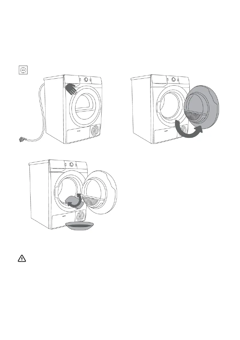 Reinig voor het eerste gebruik de trommel van de droger met een zachte doek en wat water (figuur