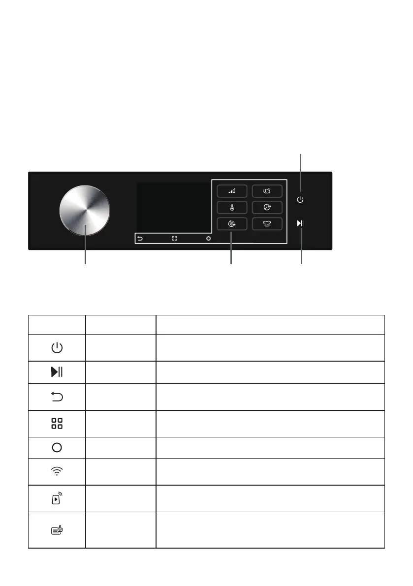 bediend door op de knoppen te tikken; de programmaselectie wordt gedaan door aan de hoofdknop