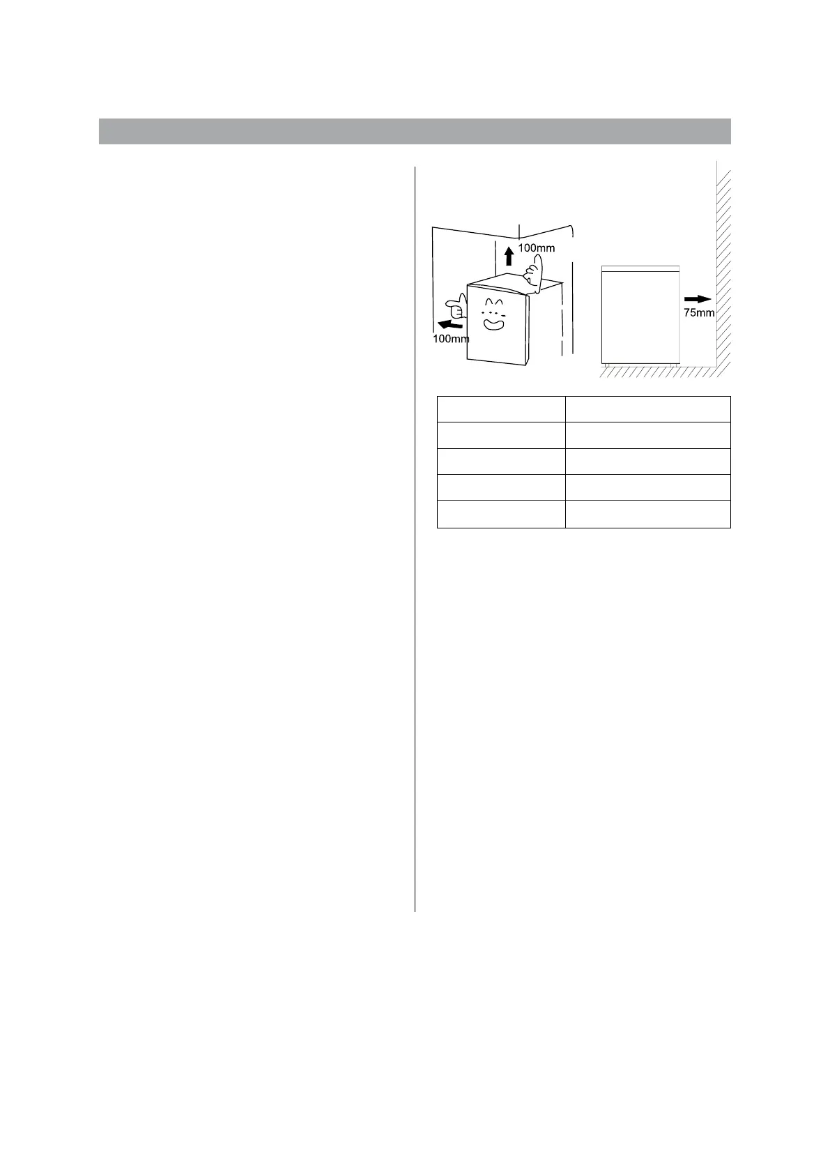 frigorifero al muro almeno di 100 mm di spazio sui due lati,