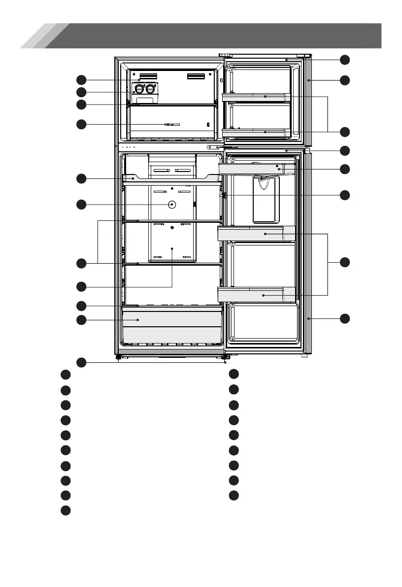 les étagères, tiroirs sur leur position d'origine comme indiqué dans l'illustration ci-dessus.