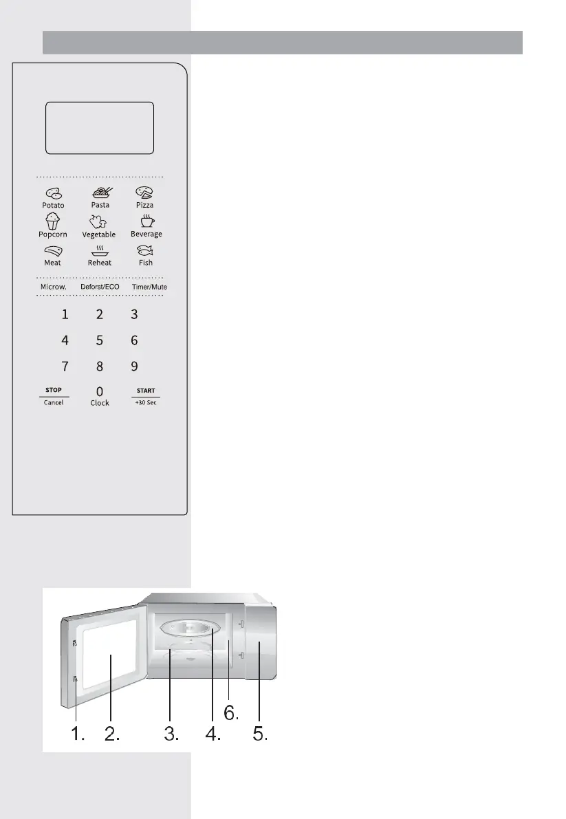 Shows the clock, cooking time and setting.