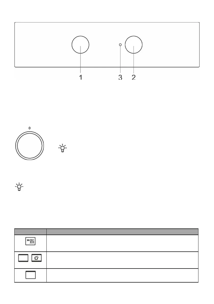 The oven can be operated with the knob for "oven mode selection" to select the function and "temperature setting" to set