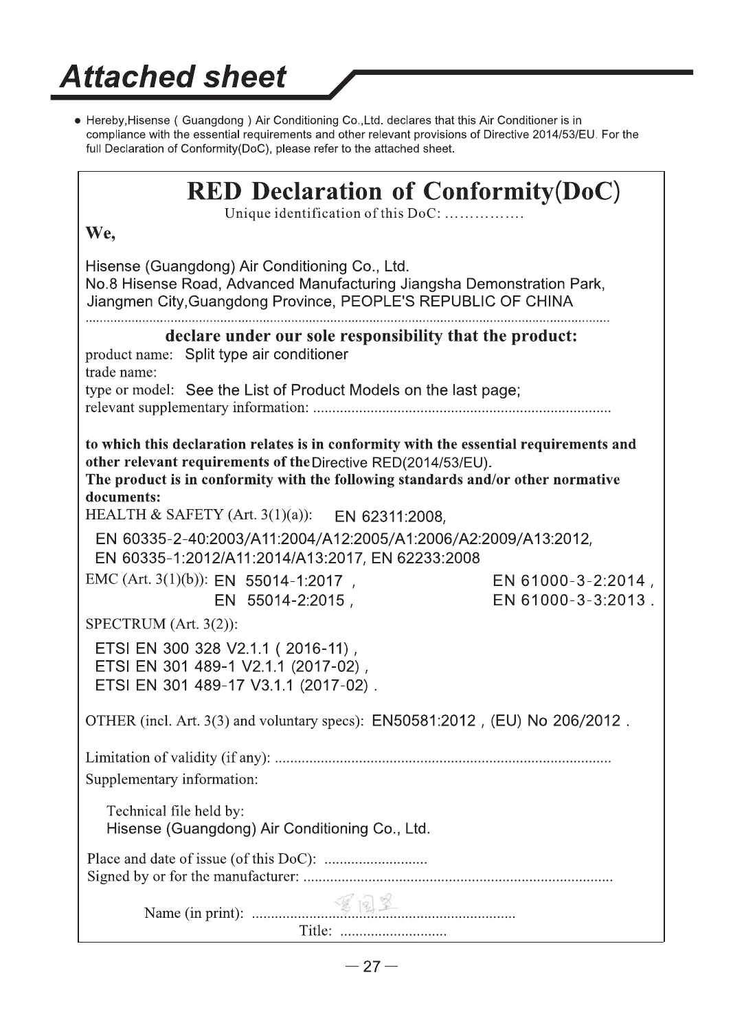 Hisense HA70KW00G handleiding