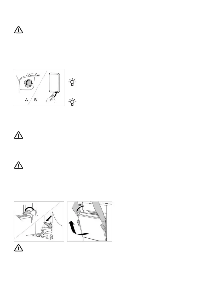 15° (regarding to the closed door position), slightly close the door and pull it out from both hinges of the appliance.