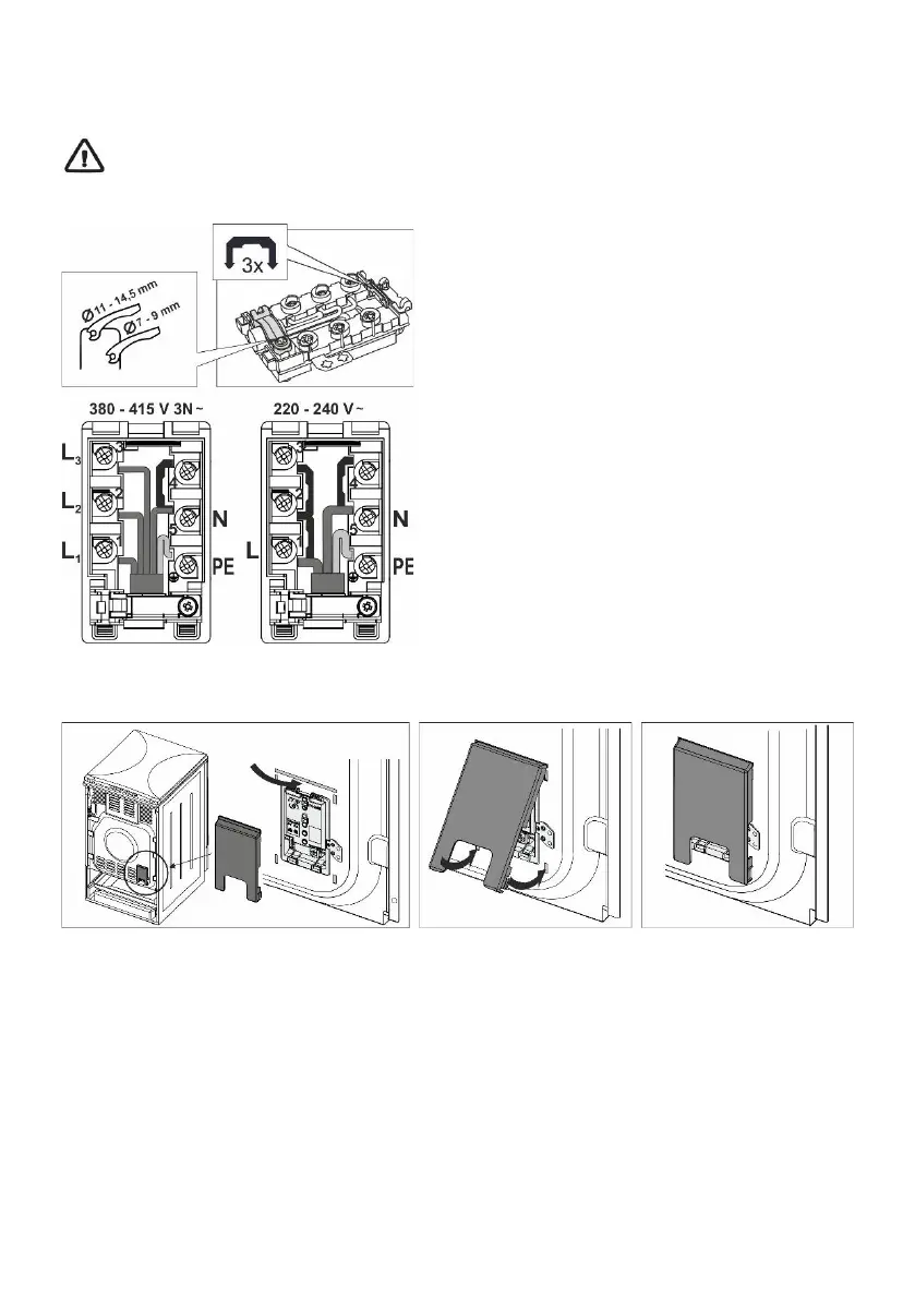 – 415V 3N~). Three bridges are needed for single-phase connection (220 – 240 V ~).