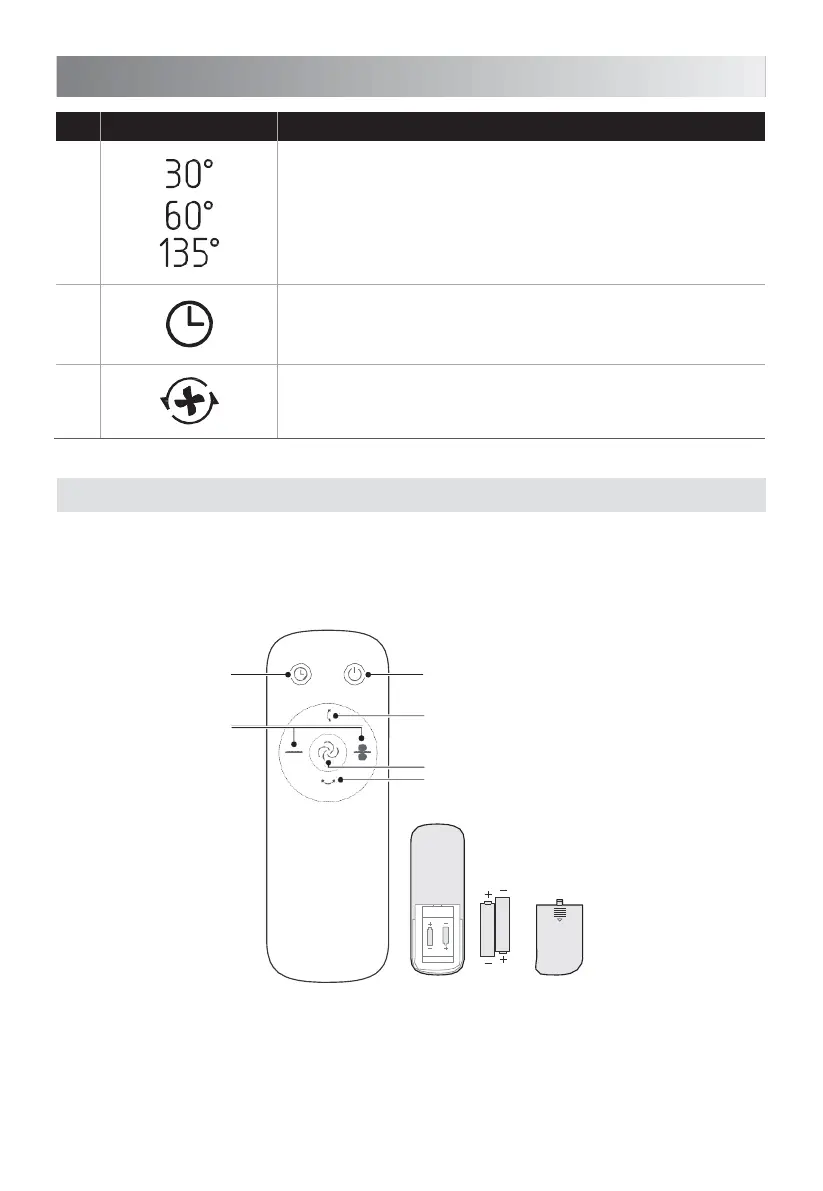 • Nuotolinio valdymo pultas veikia 5 metrų atstumu prieš ventiliatorių ir 30 laipsnių atstumu nuo