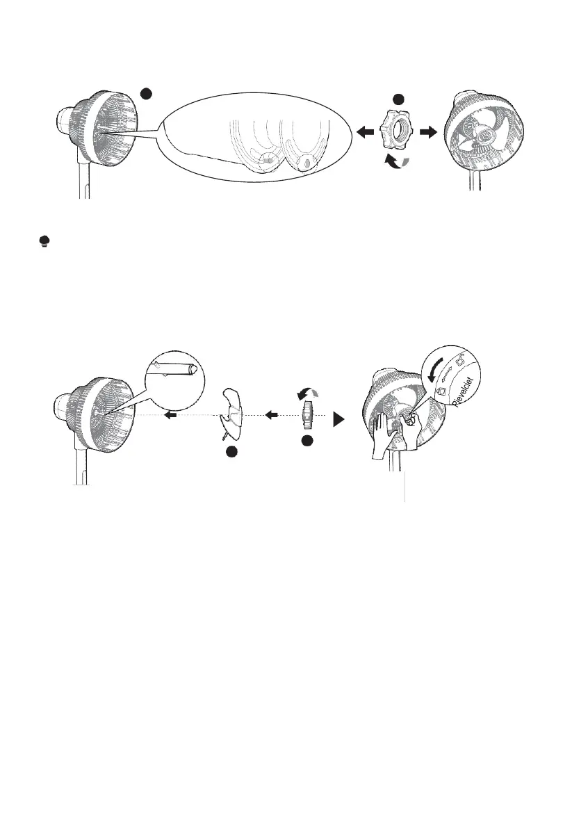 Nostipriniet ❺lāpstiņas uz motora vārpstas ar ❻ lāpstiņu pretuzgriezni.
