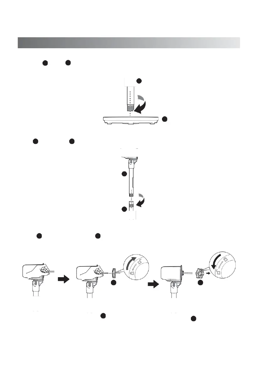 Wyrównaj 2 słupek i 3 podstawę, obróć zgodnie z ruchem wskazówek zegara i zamocuj.