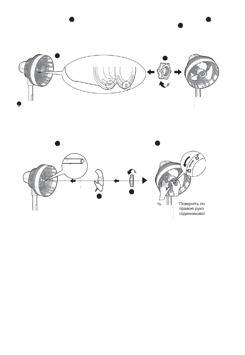 Почепіть задню решітку 7 на передню частину корпусу електромотора; повертайте