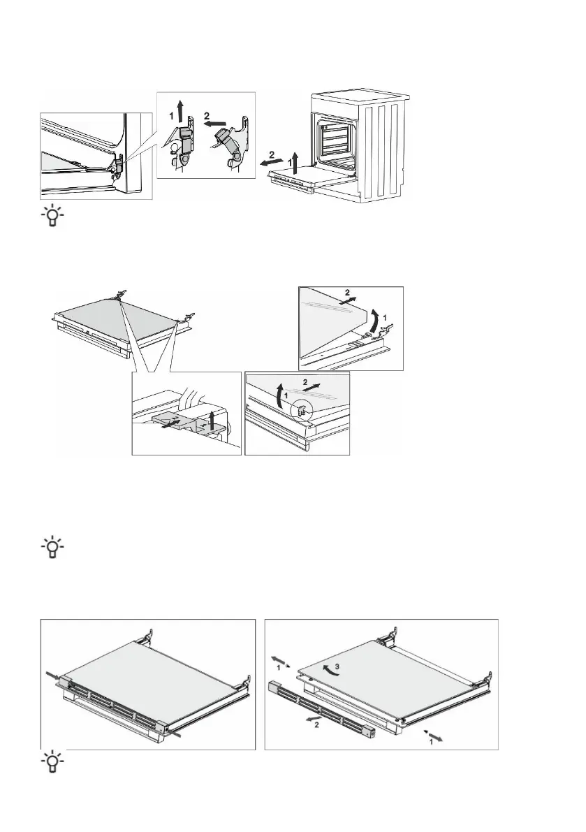 • Slowly close the oven door, lift it slightly and pull it out from the both hinges of the appliance.