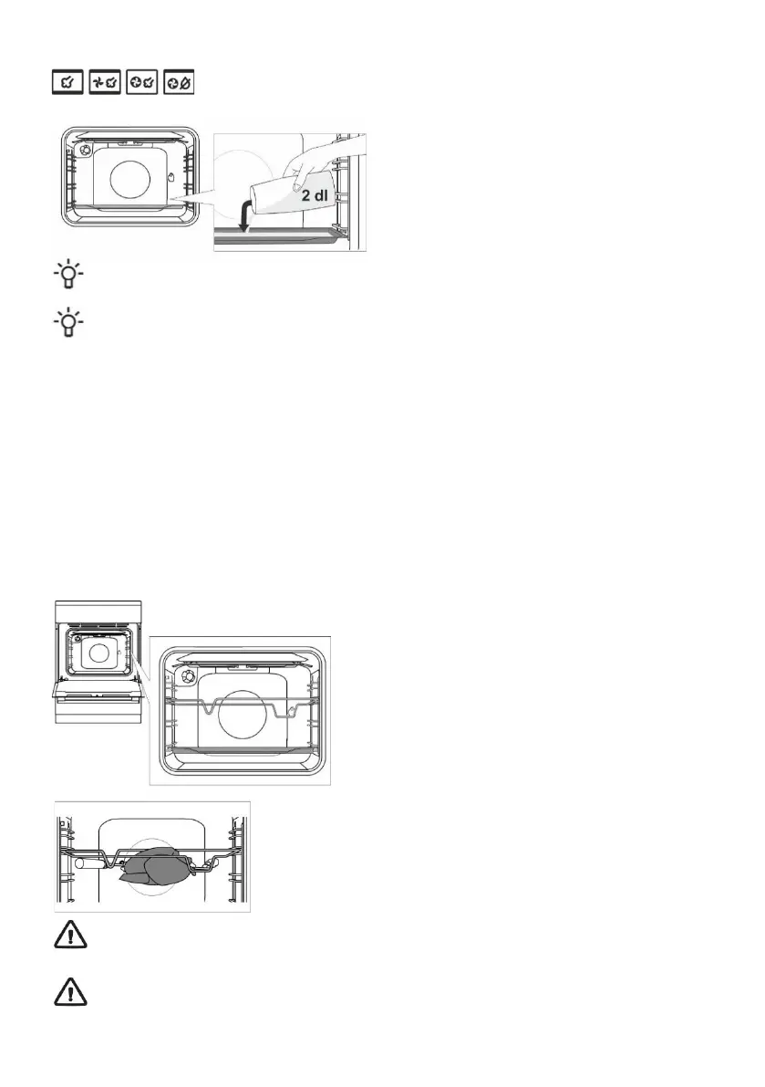 • When preparing food, a lot of steam is formed inside the oven, which is drained through the chimney at the back of