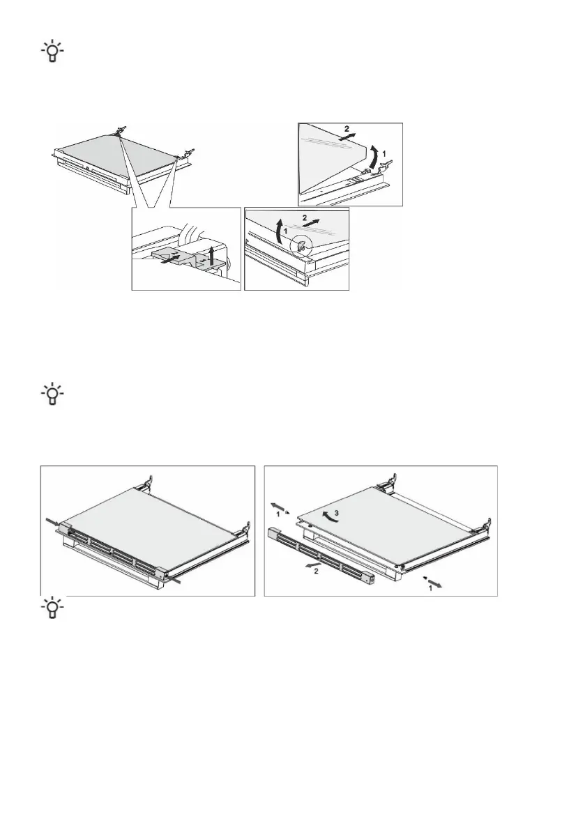 • To remove the third glass pane (only with some models), lift and remove it. Also remove the rubber seals on the