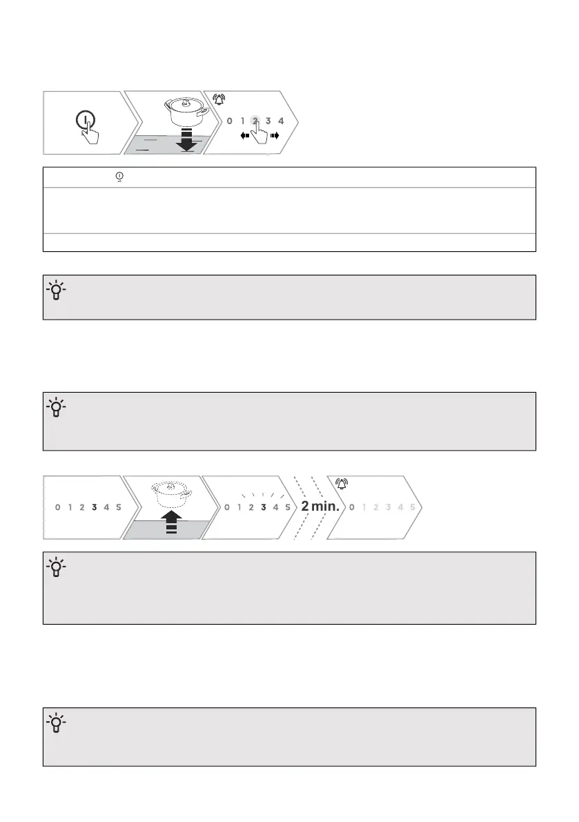 If you do not put the cookware back on the cooking zone within 2 minutes, an acoustic signal
