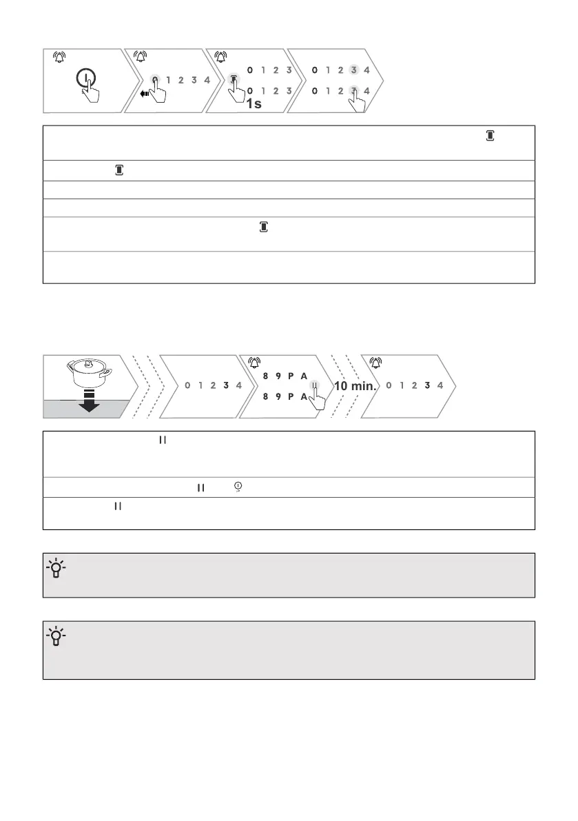 With this function, you can pause the operation of the entire hob during cooking.