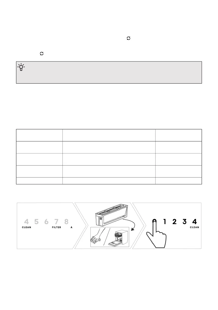 grease filters need cleaning. Three usage intensities can be set to determine the cleaning runtime of