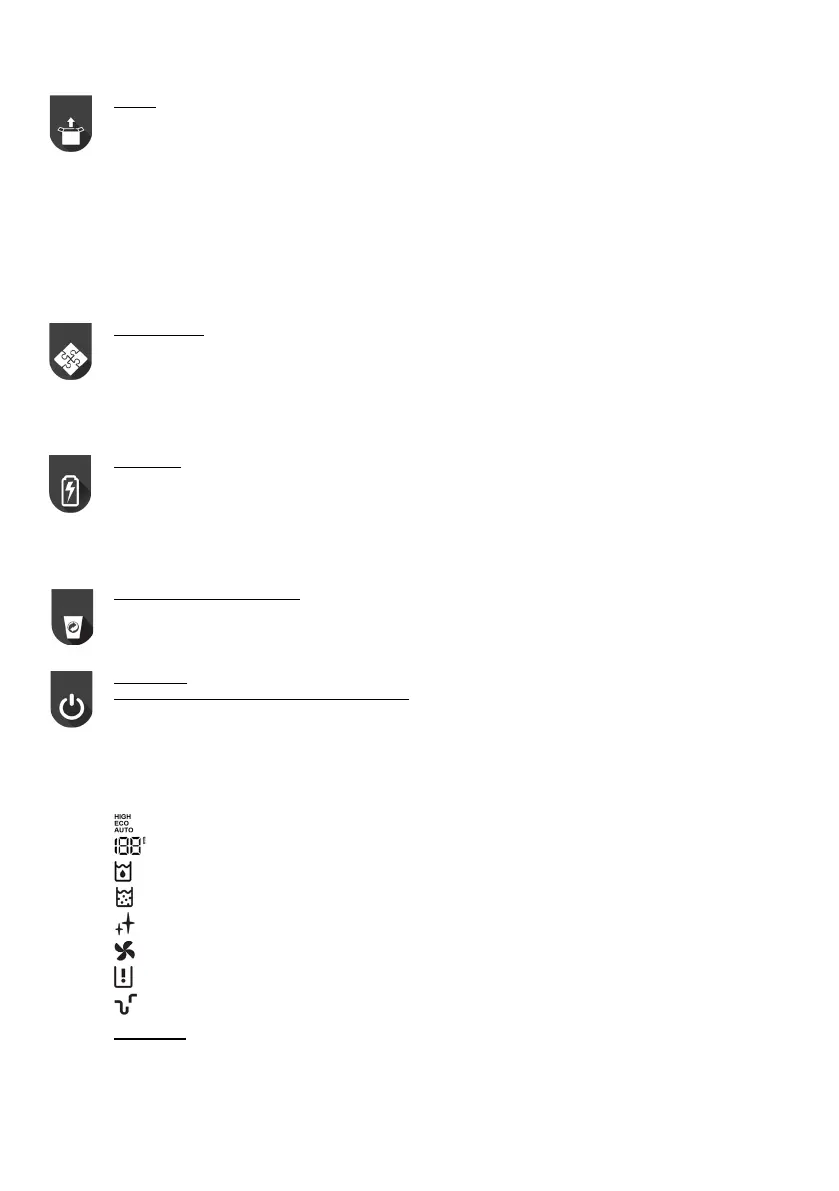 Speed control button. Operation: ECO (up to 20 min) / Auto (up to 25 min).