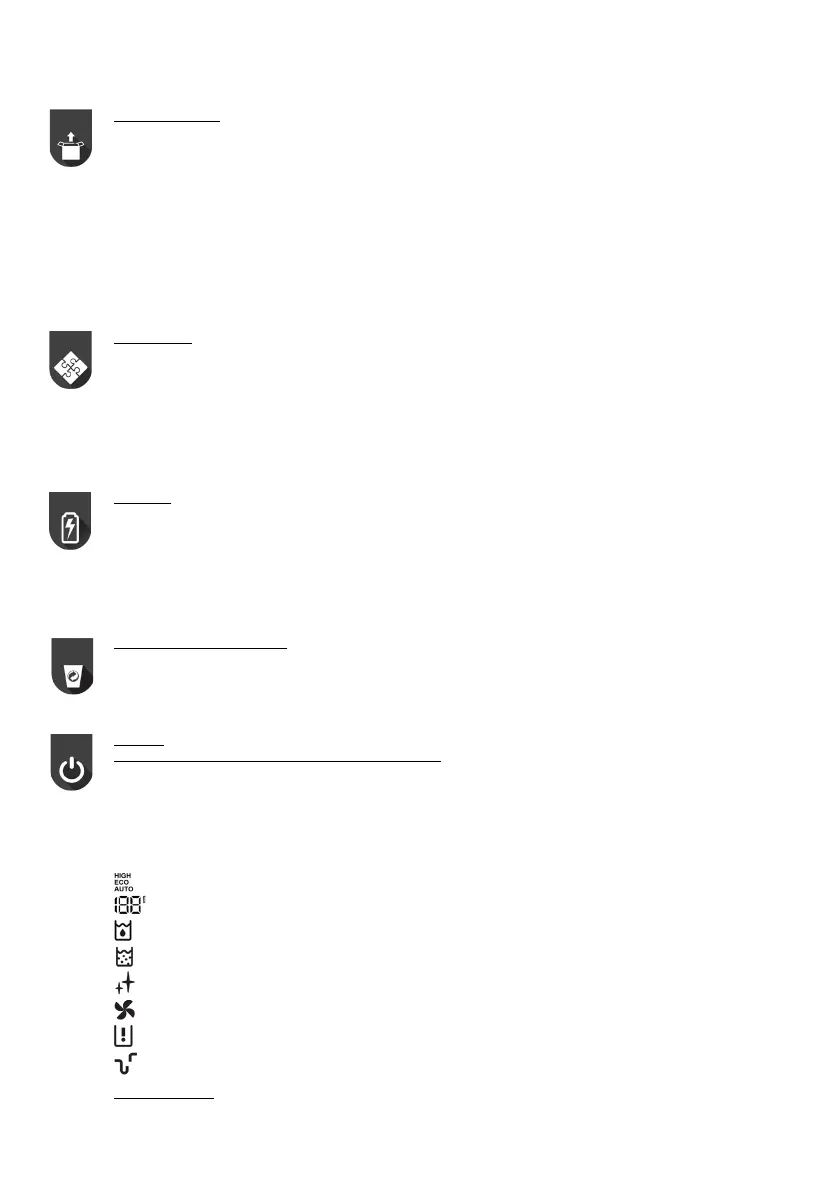 ҚОСУ/ӨШІРУ түймесі. // Тазартқыш тік күйге қойылғанда, ол автоматты түрде тоқтайды.
