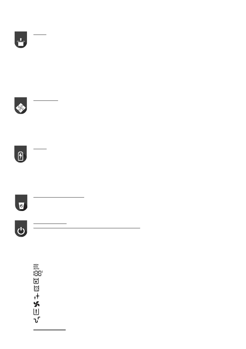 Botón de control de velocidad. Funcionamiento: ECO (hasta 20 min.) / automático (hasta 25 min.).