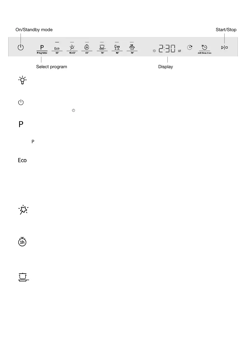 Select a program to suit the type of dishes and how dirty they are. Eco 55° is always pre-selected.