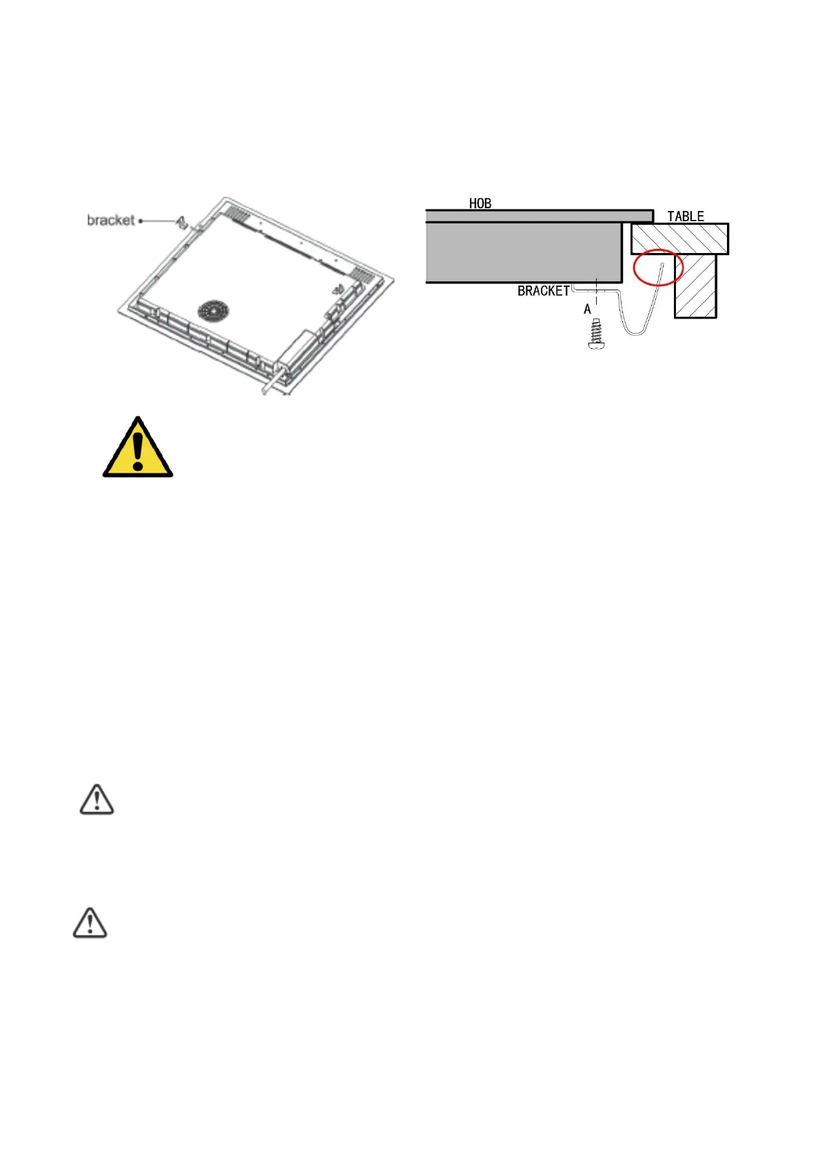 Fix the hob on the work surface by screw 2 brackets on the bottom of hob (see picture) after installation.