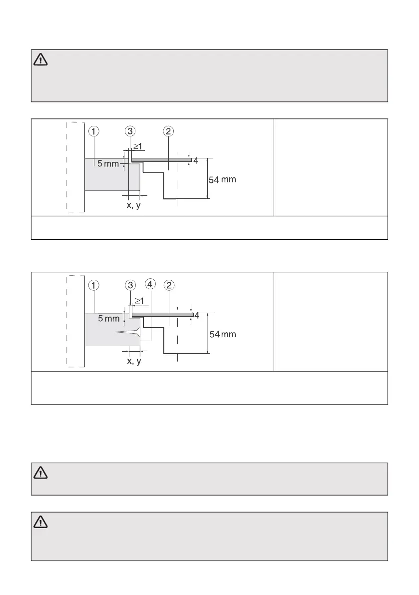 Install the wooden frame 5 mm below the upper edge of the countertop (see Figure).