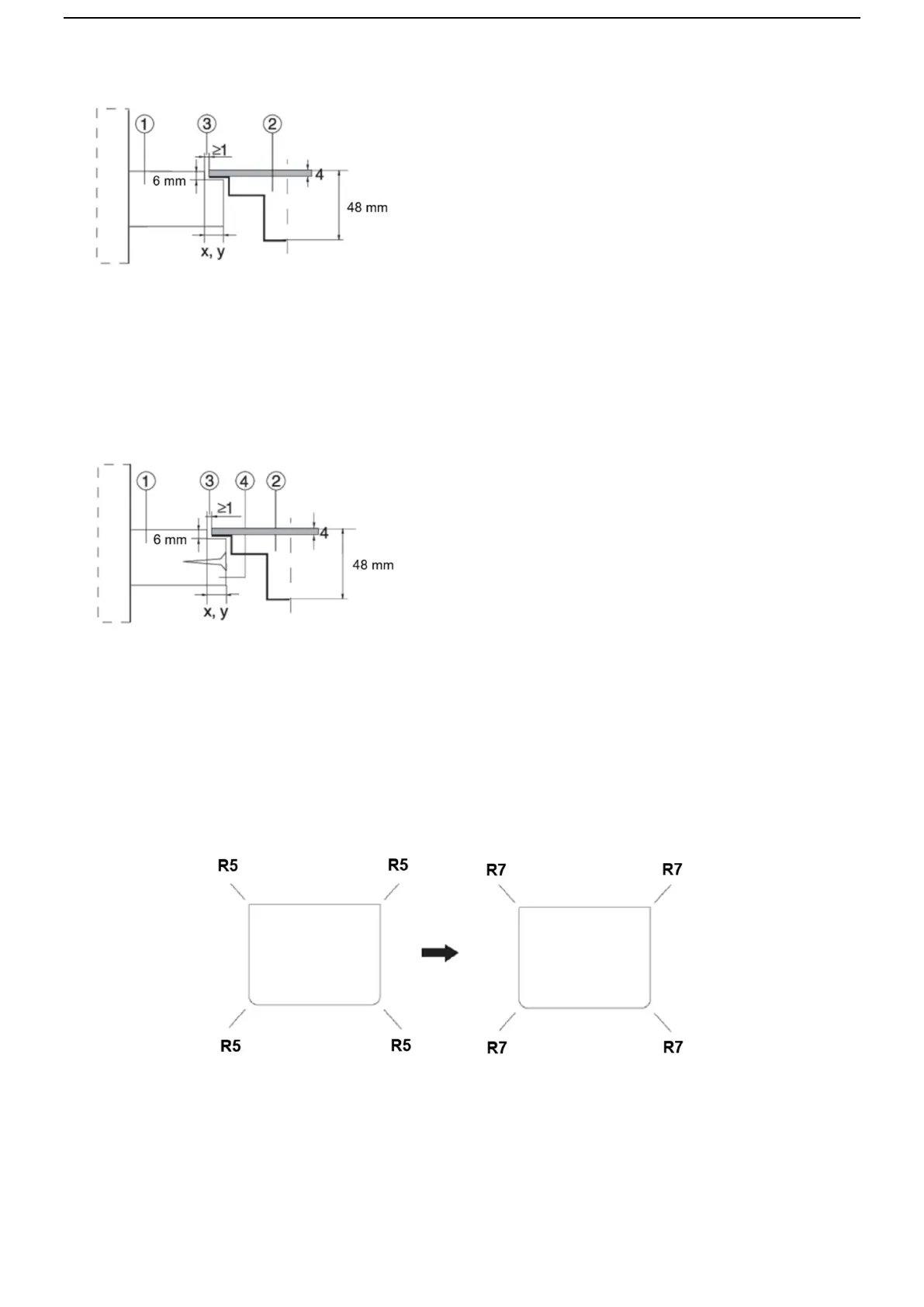 the countertop, the slot is adjustable (min. 2 mm). Install the wooden frame 5,5 mm below the upper