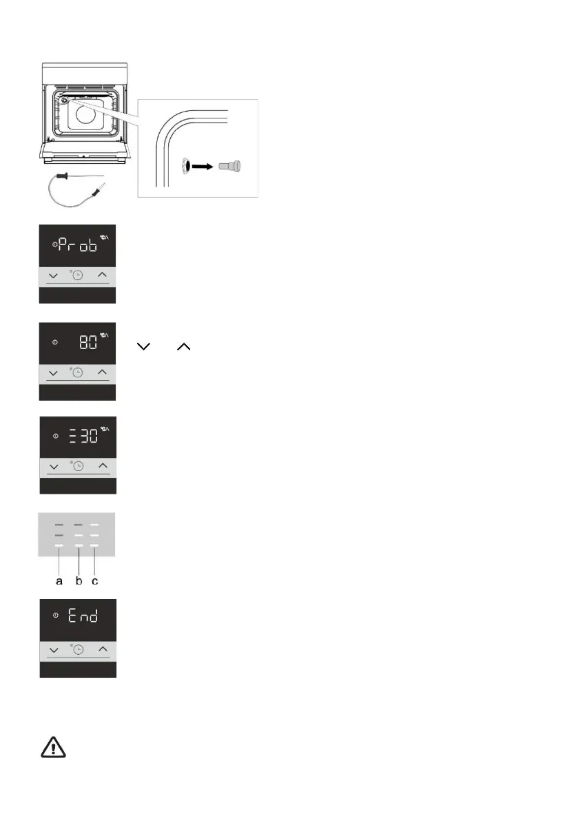 "Prob" will appear on the display for 3 seconds. Then, the icon (meat probe) will appear on the