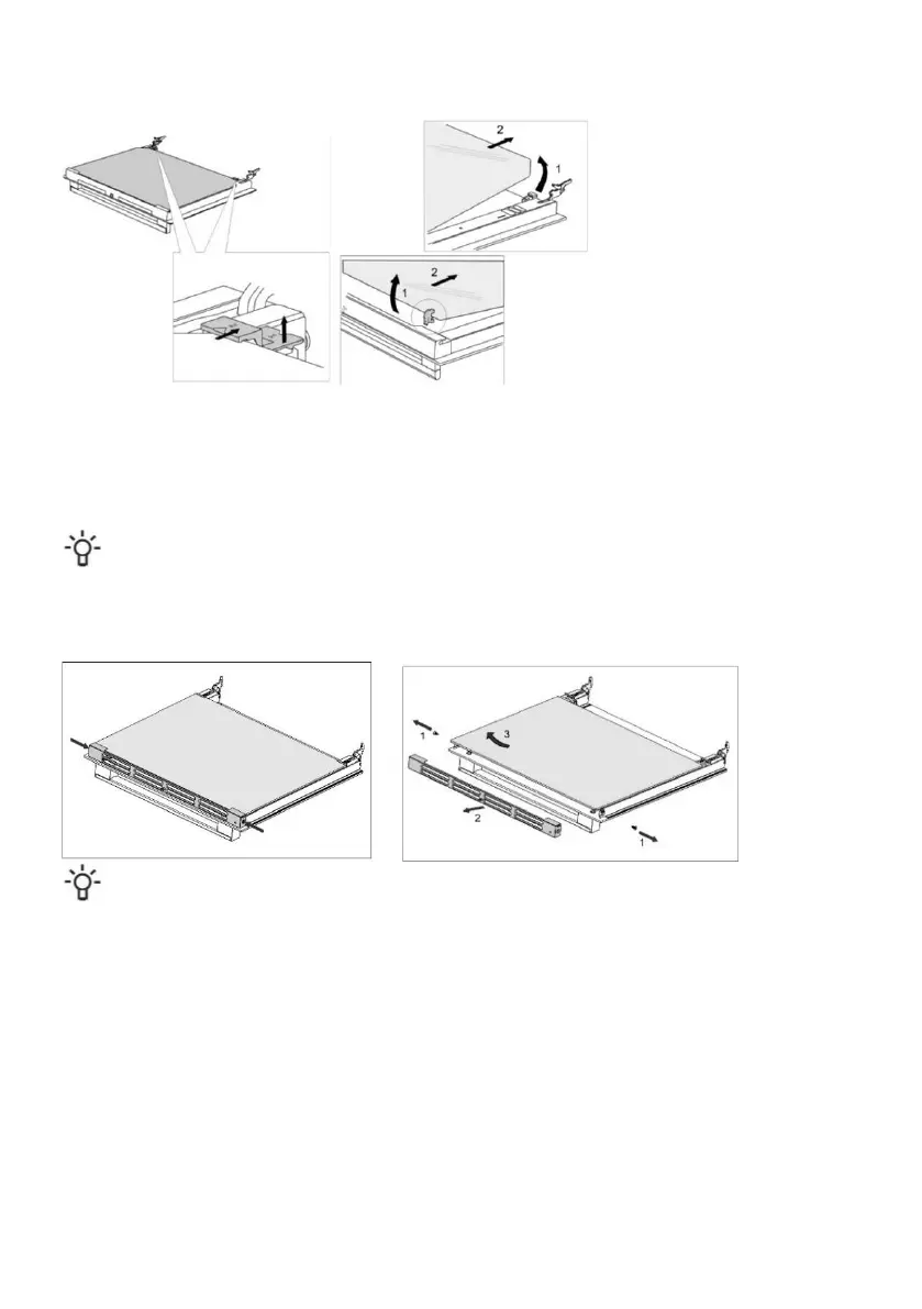• Slightly lift the supports on the left and right side of the door (marking 1 on the support) and pull them away from the