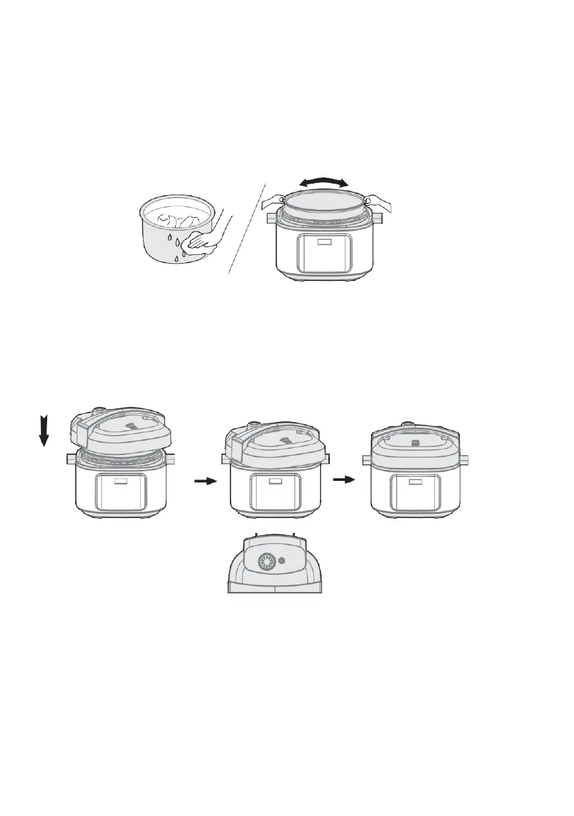 Поставете горния капак хоризонтално върху корпуса на уреда и завъртете горния