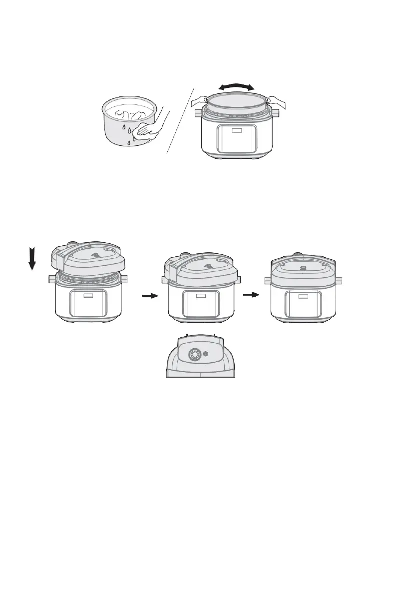 (Кришку розблоковано). Помістіть верхню кришку горизонтально на корпус скороварки