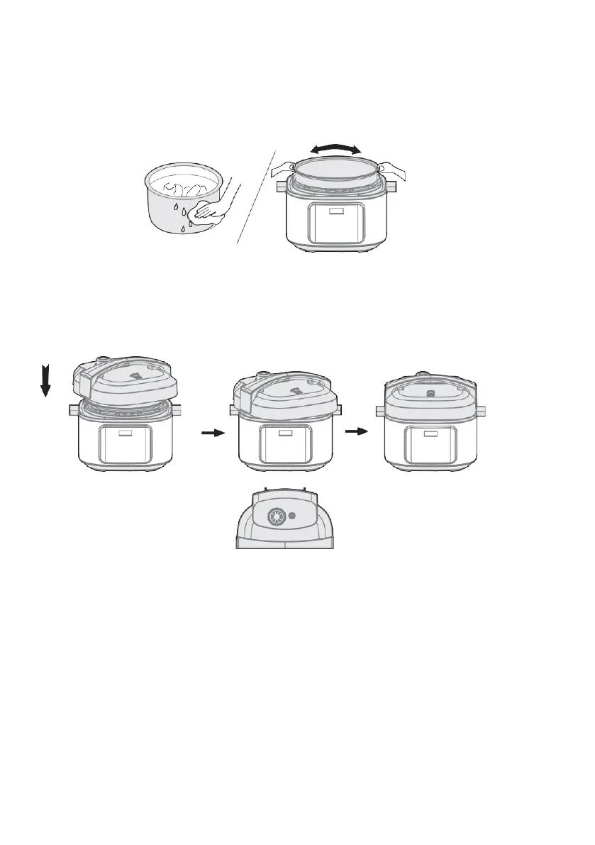pary. Elektrický tlakový hrniec prejde do režimu odsávania. Pri vypúšťaní pary neklaďte ruky