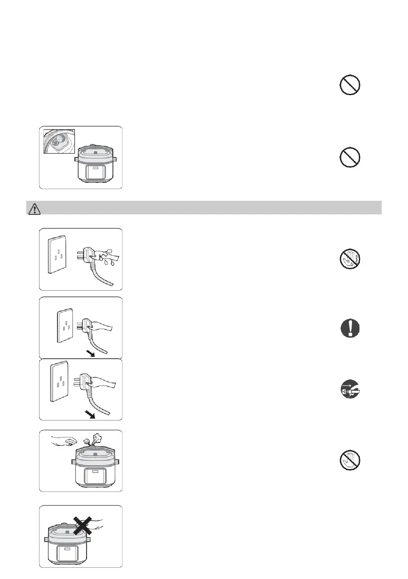 När den elektriska tryckkokaren inte används finns det inget tryck i den och