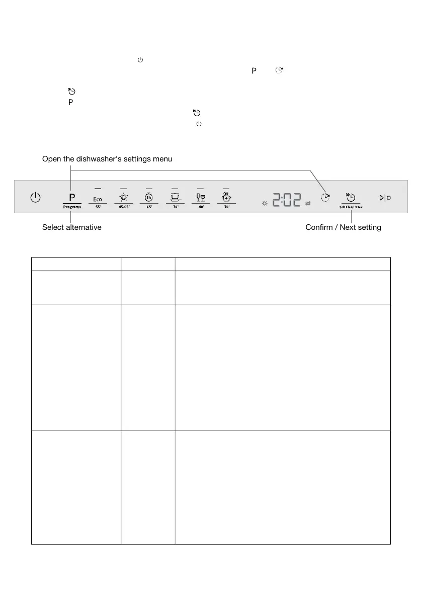 To open the dishwasher's settings menu, press and hold and until SEt is shown on the