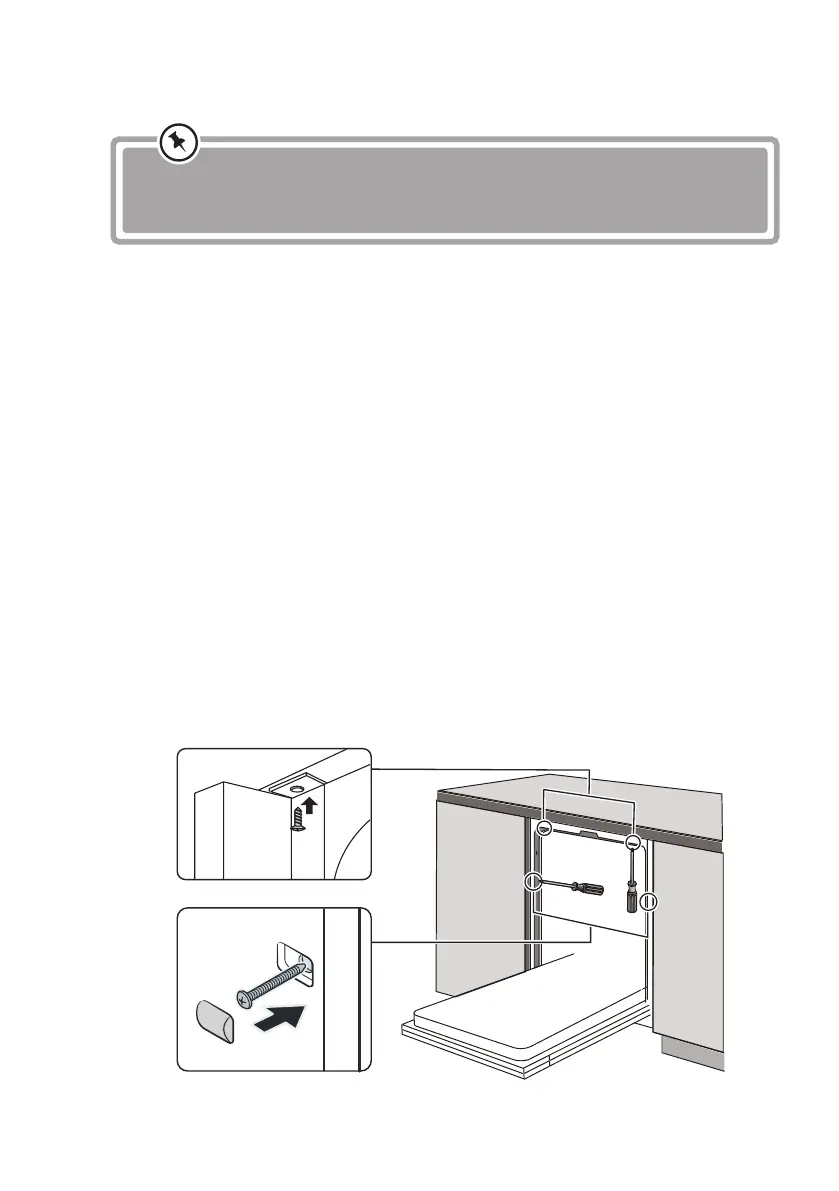 9. The dishwasher must be secured in place. There are two ways to do this: