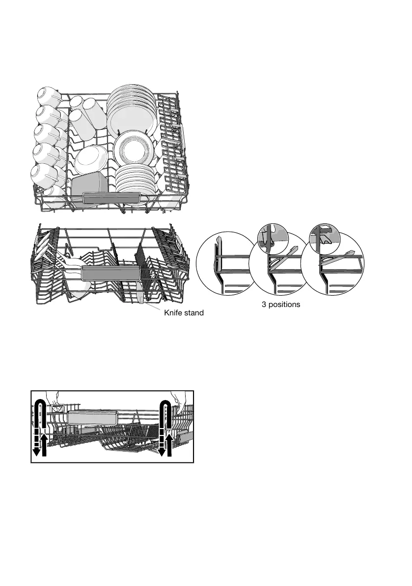 Place glasses, cups, bowls, side plates and saucers in the upper basket. All dirty surfaces should face