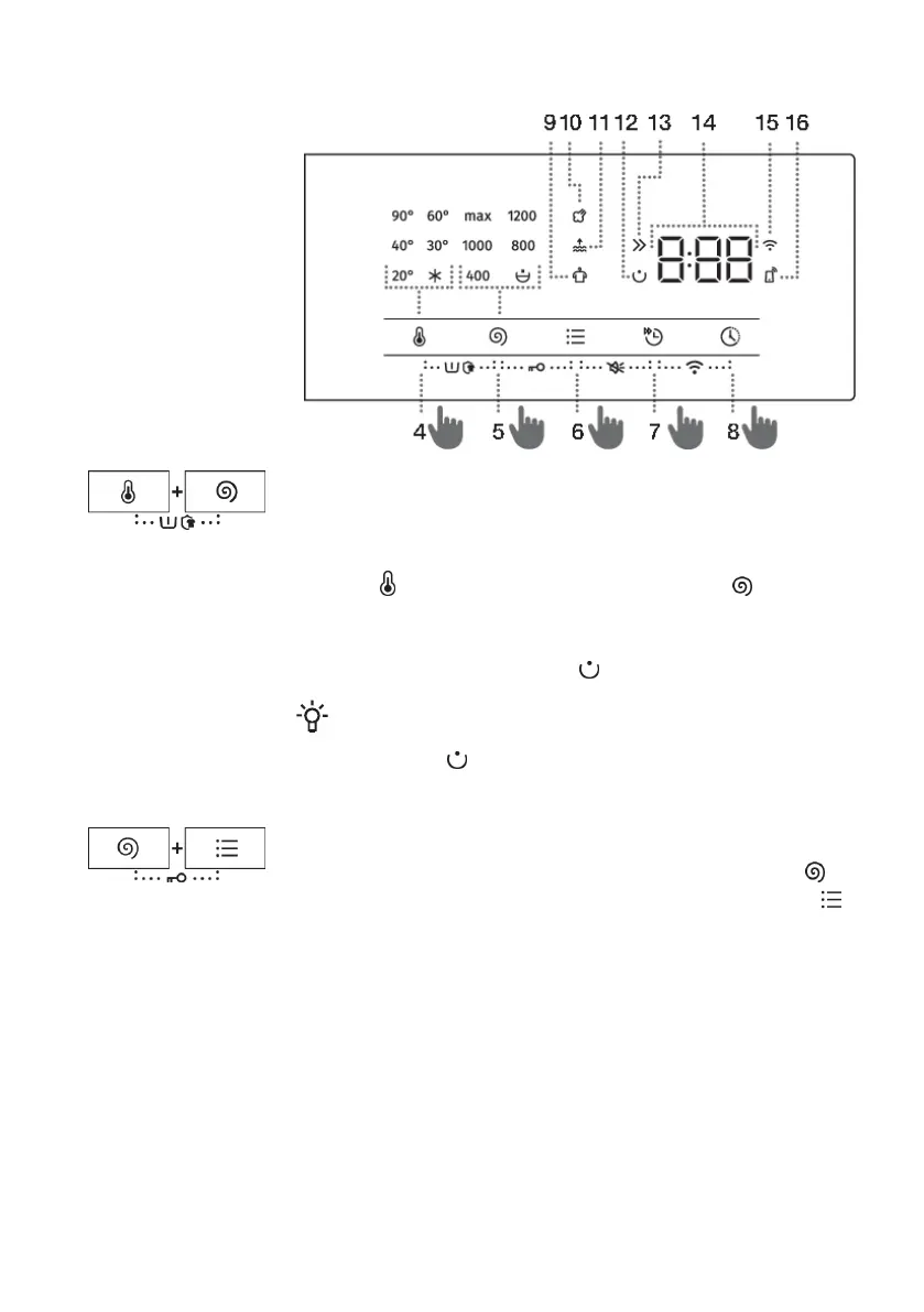(4) TEMP. (WASHING TEMPERATURE) and (5) SPIN (SPINNING