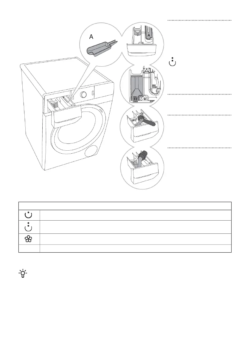Recommended amount of washing detergent at certain loads and water hardness levels are specified