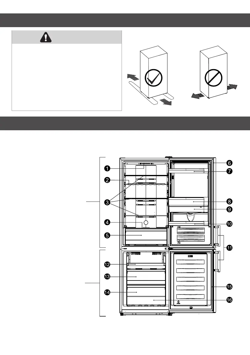 ** : If the model is without a water dispenser, the water tank is replaced with a door rack.